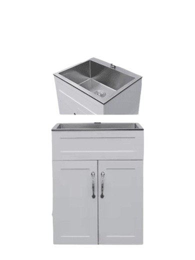 Cabinet 24″x 21″ with 2 MDF High Gloss Door, 304 stainless steel sink, sink size 25″x 22″x 10″.