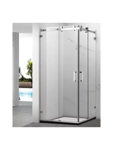 36″x36″x78″ STAINLEES STEEL SQUARE SHOWER DOOR. 2 door moveable 2 doors fixed. Stainless Steel Frame upper roller Glass Door with Stainless Steel Hardware, Glass Width Available . Tempered Glass with Both Door Sliding right or left.