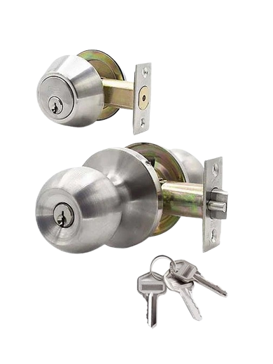 .STAINLESS STEEL COMBO LOCK SET DEADBOLT AND ROUND DOOR LOCK WITH KEYS BURSHED FINISH .304 STAINLESS STEEL HANDLE. RUST PROOF. DURABLE EASY TO INSTALL.