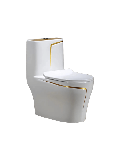 MODERN BATHROOM ONE PIECE TOILET WHITE AND GOLD COLOUR