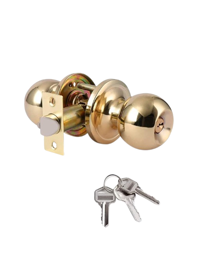 .ROUND DOOR LOCK WITH KEYS GOLD FINISH